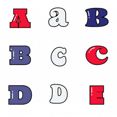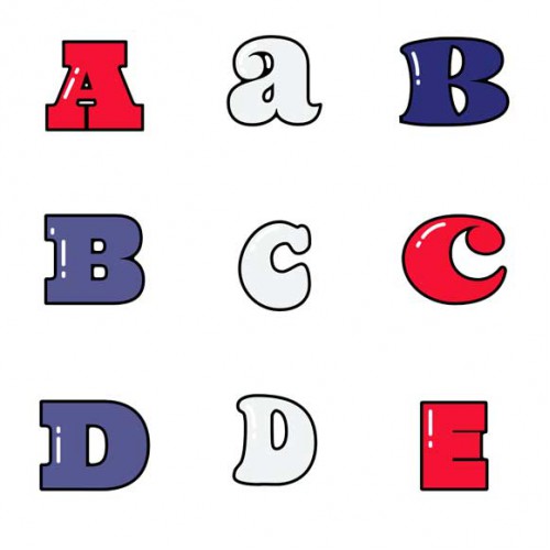 This bold, toon-like alphabet features american colors and a cute, cartoon-like font.