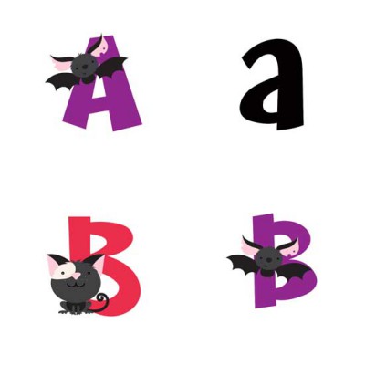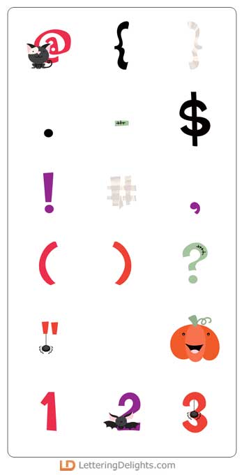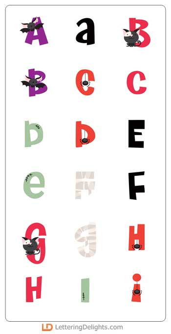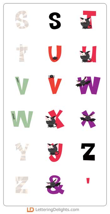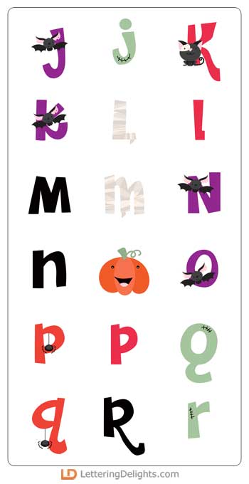 This haunted alphabet features bats, webs, mummy wraps and more.