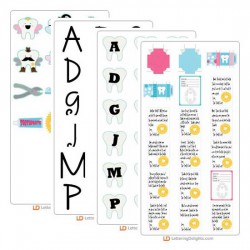 Smile, everyone! Show those pearly-whites! The Big Tooth alphabet makes learning about dental hygiene a party! {I'm totally thinking 'Brushing Chart'...how about you?!} And the next visit from the Tooth Fairy just got a whole bunch cuter. Ohhh, and what about those memory pages showing first teeth! Or the annual visit to the dentist! Or braces on---Or off! Wow, how'd we survive without this alphabet?! {grin} There's a whole lot of dentistry when you stop to think about it...