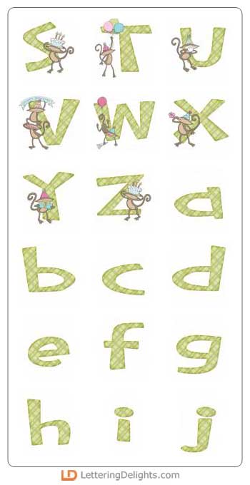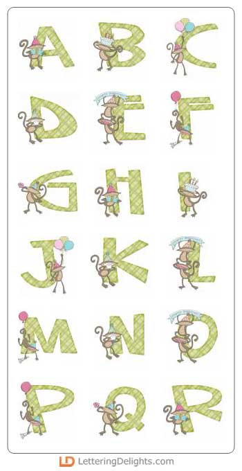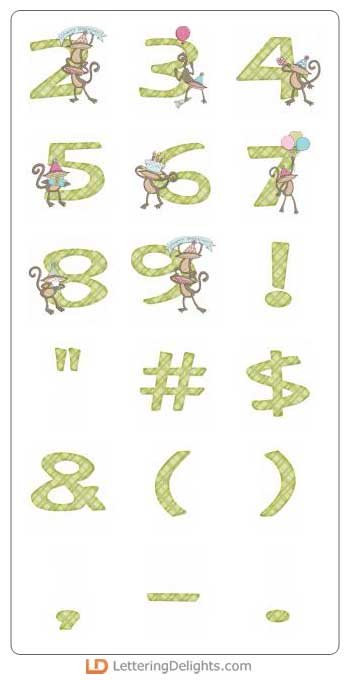 Birthday Monkey is a fun and festive alphabet with crazy monkeys celebrating a birthday adorning the letters and numbers. Makes a great addition to your digital scrapbooking library. Perfect for homemade party invitations or highlighting those special birthday memories.