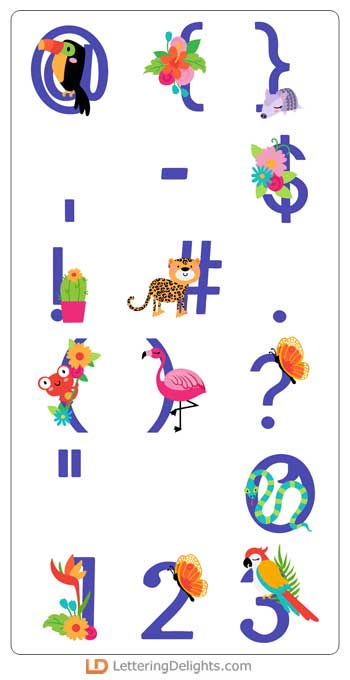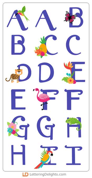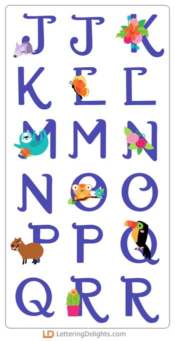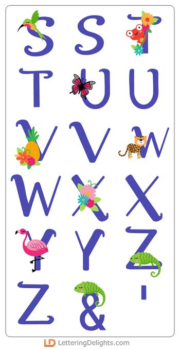 This fun alphabet features tropical flowers and animals and coordinates with our Carisma Collection.
