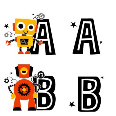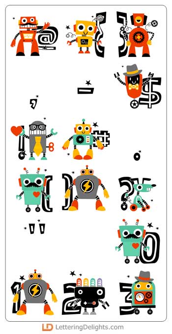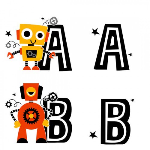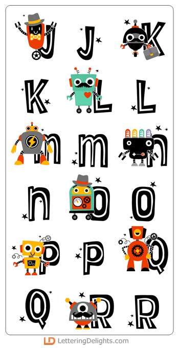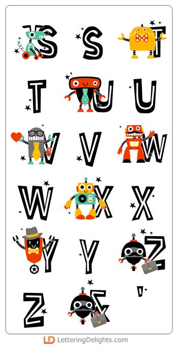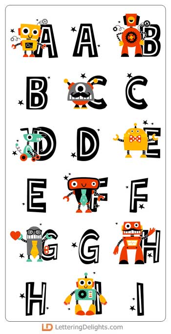 This adorable alphabet features our dadbots and coordinates with the collection perfectly.