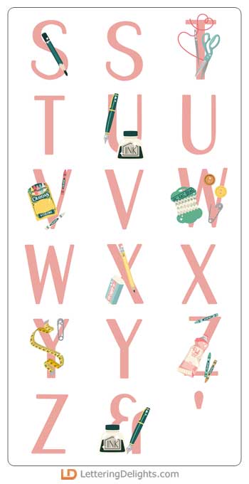 This beautiful alphabet coordinates with our Dainty Domestic Collection.