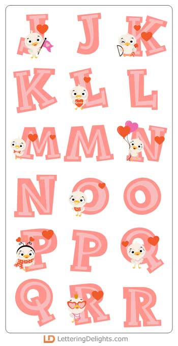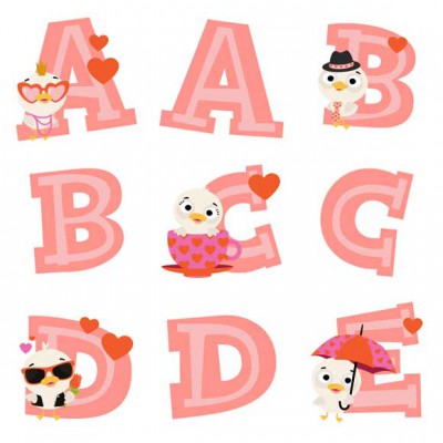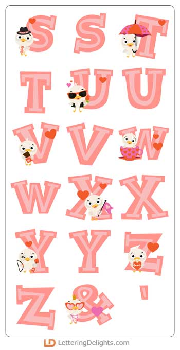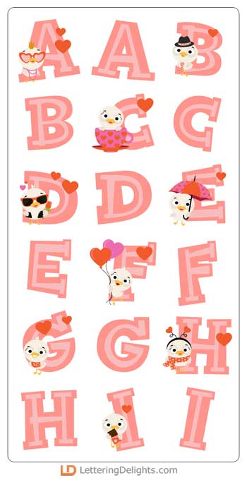 This fun alphabet coordinates with our Ducky in Love Collection.