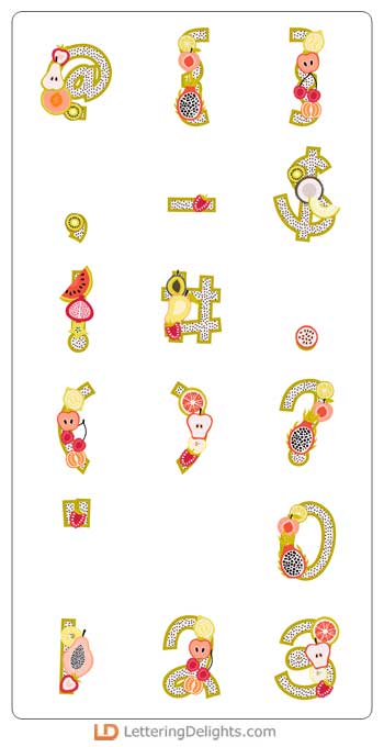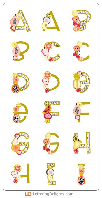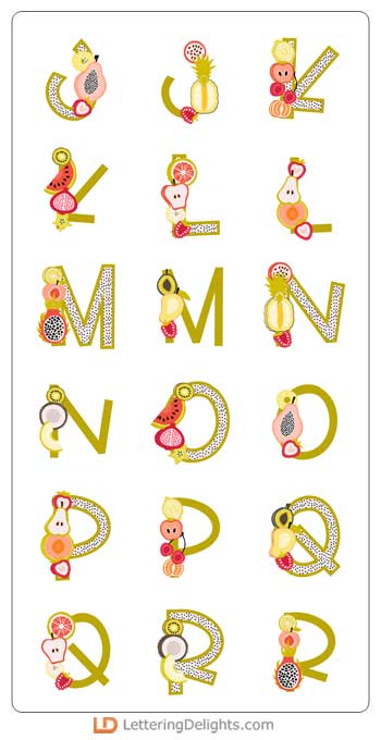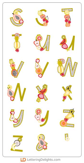 This alphabet coordinates with our Fruitilicious Collection and features all the delicious fruit.