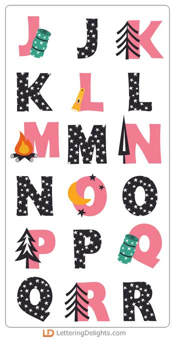 This fun alphabet coordinates with our Happy Glamper Collection.