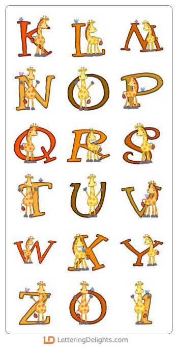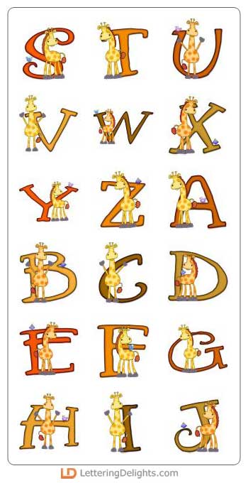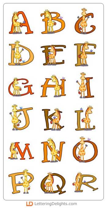 Get your creative juices flowing with this unique alphabet. Title your zoo scrapbook pages or decorate a bulletin board with these letters. Enlarge and attach them to foam core board for adorable baby room decor. These giraffes are sure to warm your heart.