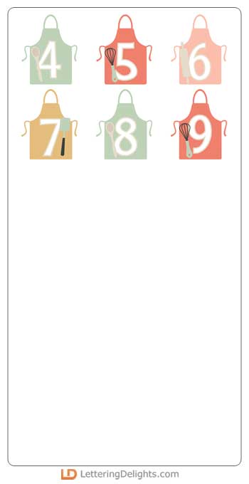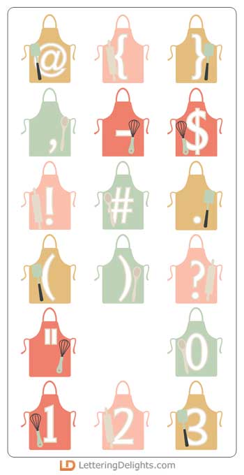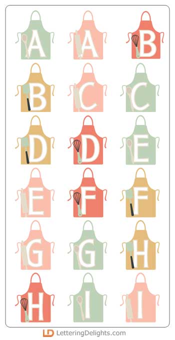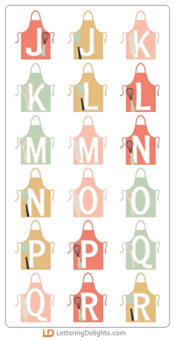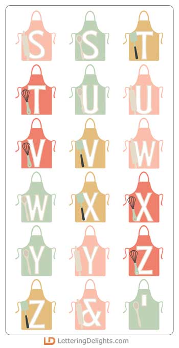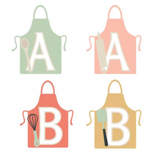 This fun alphabet features our Let's Cook Cookery and Cutlery imagery on aprons and coordinates with our Let's Cook Collection perfectly.