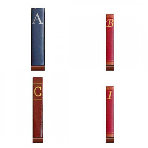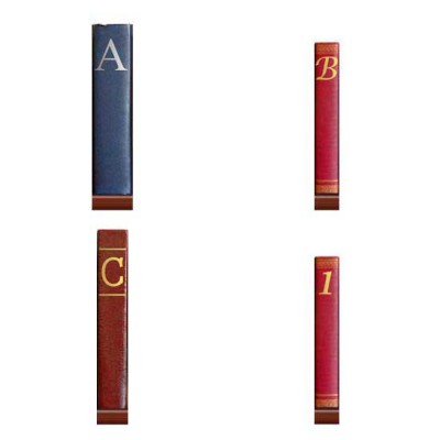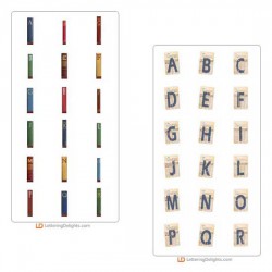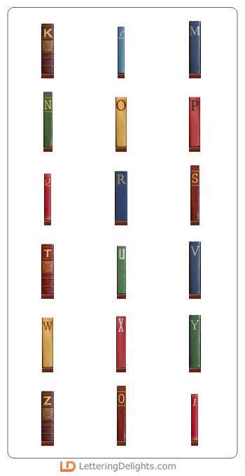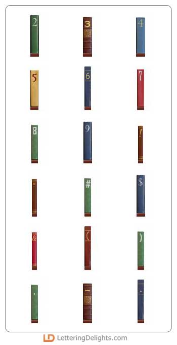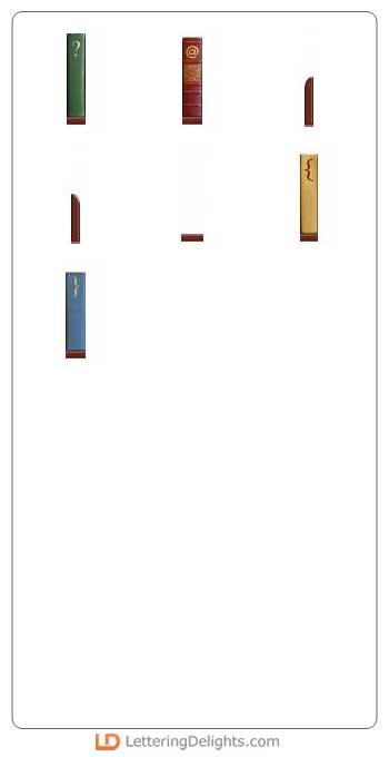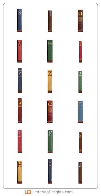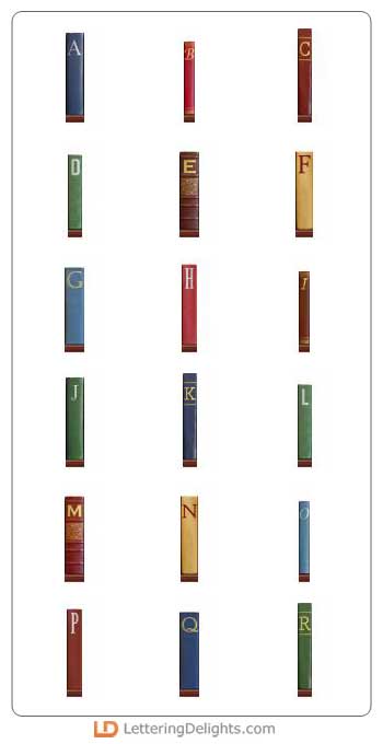 Shhh! Your in the library. At least it seems that way with this alphabet. Each letter is nestled on the spine of a book. The books line up on a bookshelf (complete with ends). It's very academic looking. All images are 300 dpi.