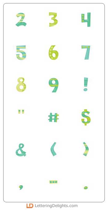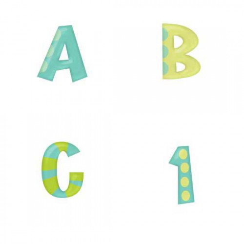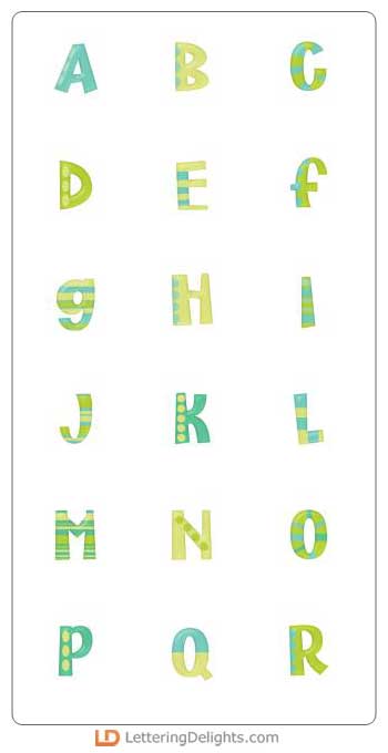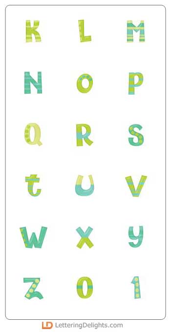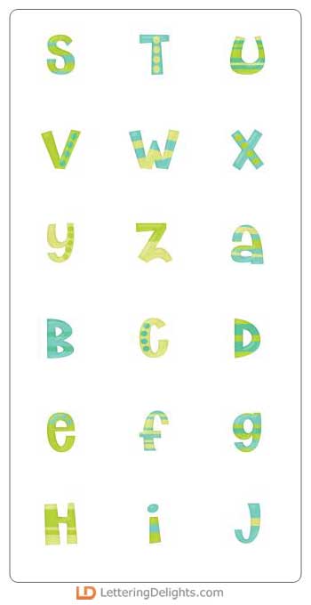 What a bright and cheery alphabet! And the name is a little modest...there's a whole lot more going on than a few stripes. Check out the dots and checks and all the patterns...it's fun to have an alphabet that doubles as an embellishment!