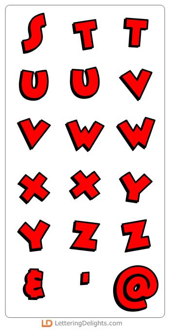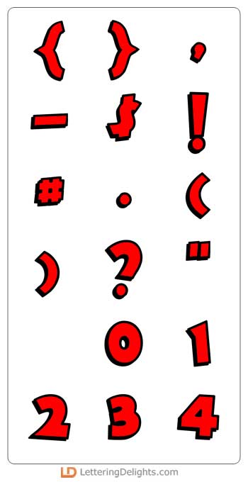 This full-color font/alphabet is a simple red, whimsical font w/ a black, 3-d shadow. This font works best for titles, displays, posters and more. Please note color fonts will show as black in non compatible programs.