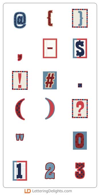 This full-color/alphabet font features a american-inspired color palette.