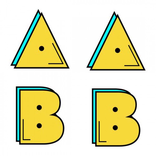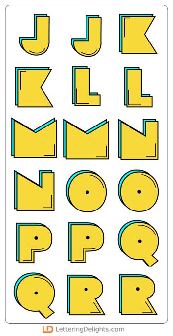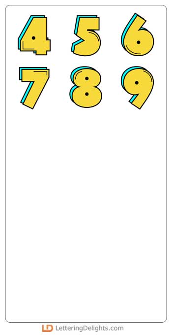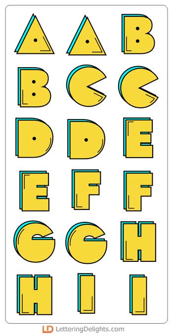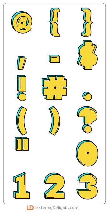 This full-color font/alphabet features yellow lettering with a blue shadow.
