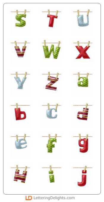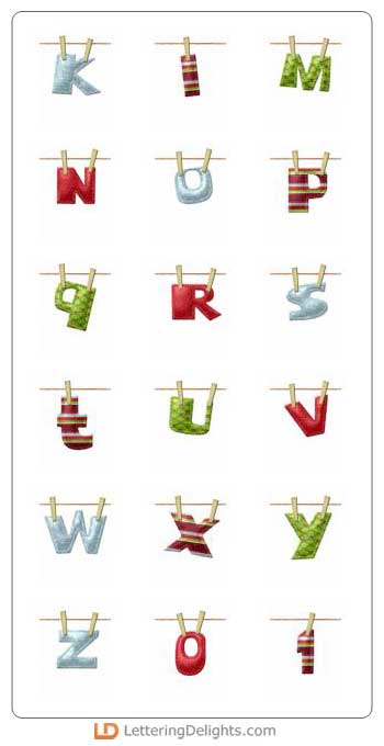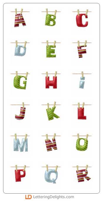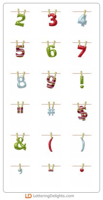 When you've got a holiday message to send, why not hang it out on the line? This fun alphabet is perfectly matched to create a fun clothesline effect (because even Santa has to do a bit of laundry!). The underscore character adds a bit of 'empty' clothes line, while the right and left brackets will give you the perfect beginning and ending to your message.