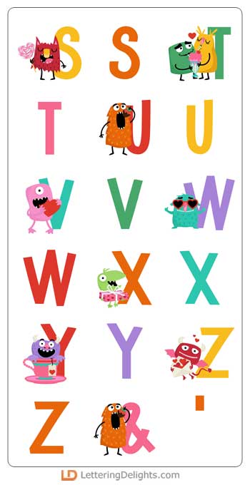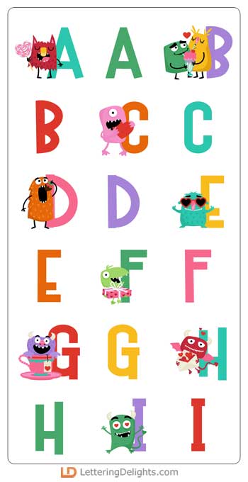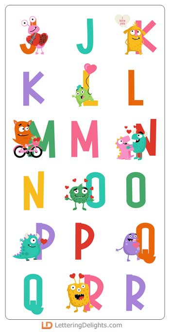 This fun alphabet coordinates with our Silly Monsters Love Collection.