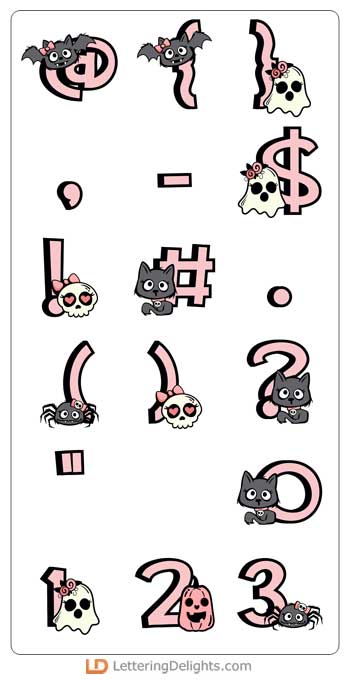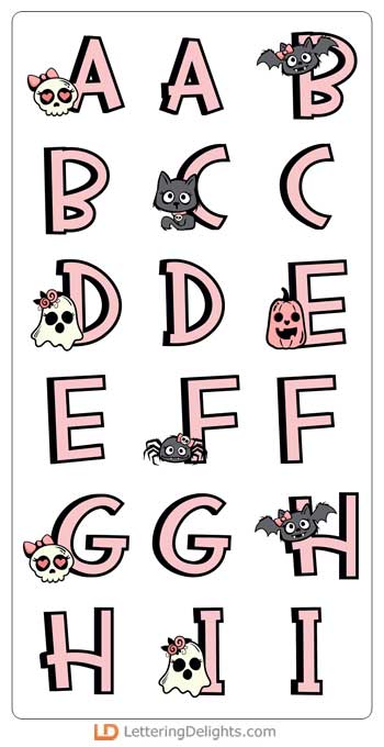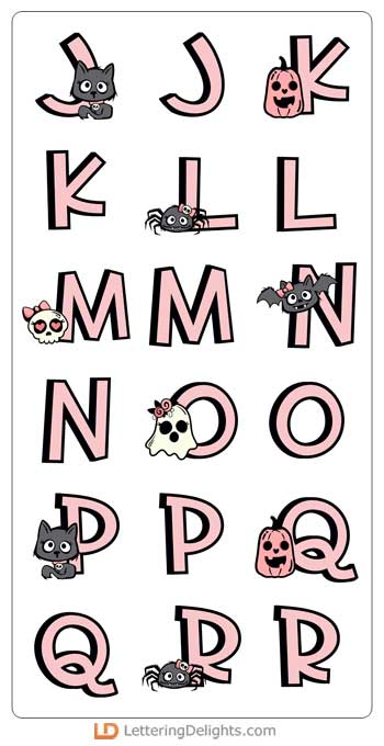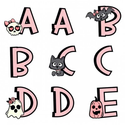 This fun alphabet coordinates with our Spooky Girl Collection.