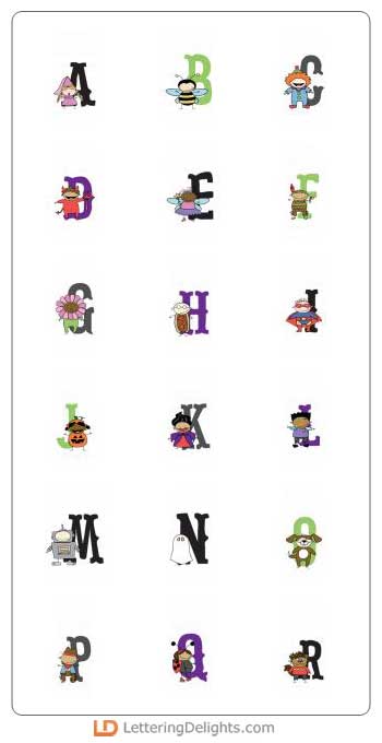 Hmmm. What should I be this year? Here's an alphabet with 26 answers to that very question. Don't you agree that one of the best parts of Halloween is the darling little Trick or Treaters parading in their costumes? The Trick or Treat Kids Alphabet characters will mingle right in with all your Halloween creations, so invite them onto your invitations, decorations and memory pages!
