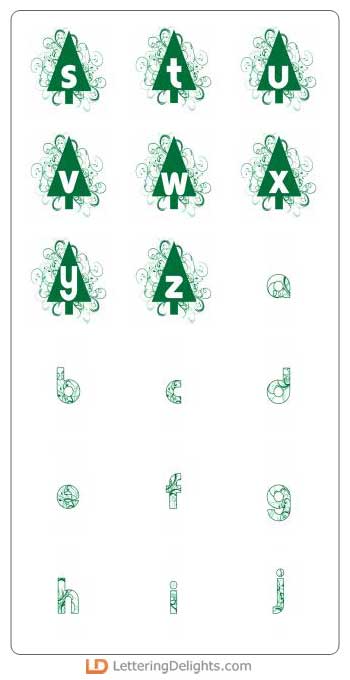 Yule Pine is a Christmas tree themed alphabet with pine tree clipart set behind classic letters and numbers. If you like what you see here, check out the matching graphics set.