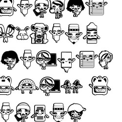 A doodlebat is a picture font. Rather than letters, each character of the font is an image. Doodlebats come with a PDF reference sheet so you can see which image corresponds with each keystroke.