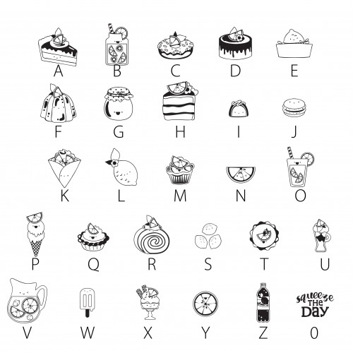 This adorable doodlebat font features 26 kawaii style lemon themed treats. Perfect for cards, crafts, gifts,decor, planner stickers, scrap book pages and more!