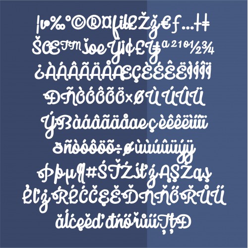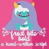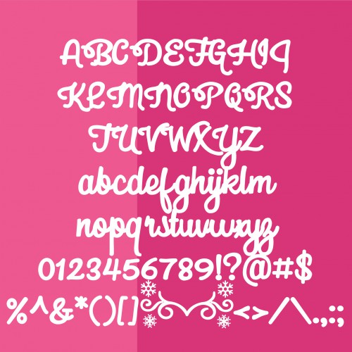 This pretty and bold, cursive script can be flourished with the brace characters for a windy, snowflake effect. Sample was typed with {frost bite}