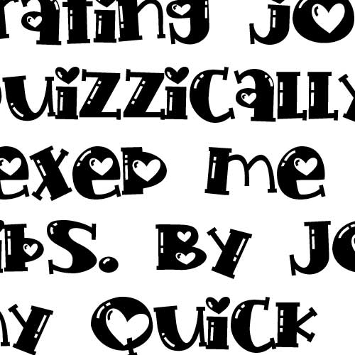 This chunky, hand-crafted, boxy font sports slab serifs, hearts, and highlights.