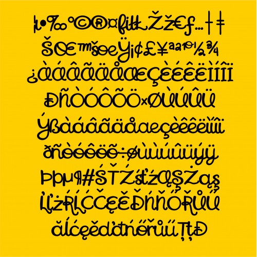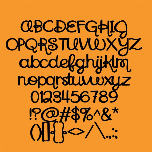 This fun new cursive script has a handful of letter with long curled descenders and is extra bold.