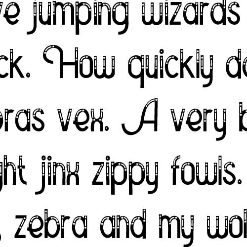 This good looking sans serif sports highlights and stars throughout. There is an alt case of flouished end letters you can access through your system's character map.