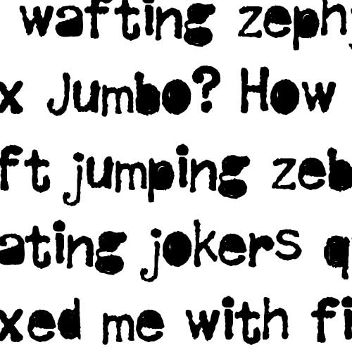This hand-crafted, sans serif is textured, grungy and has filled in spaces.
