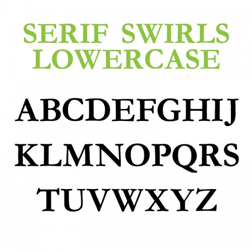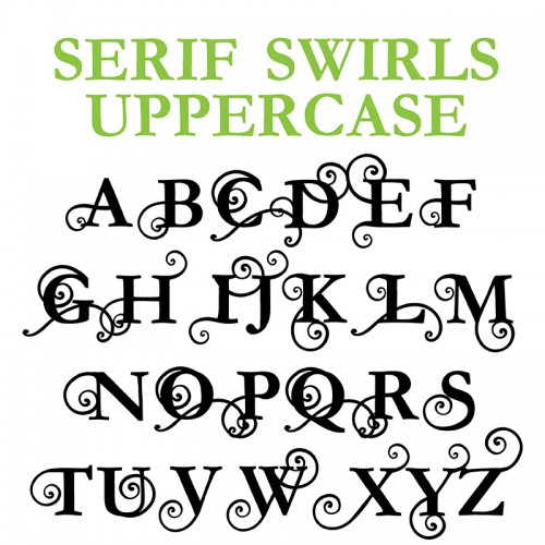 This swirly fancy font has beautiful swirls adorning the uppercase. The lowercase is without. Makes great monograms and cuts out with the cutting machine.