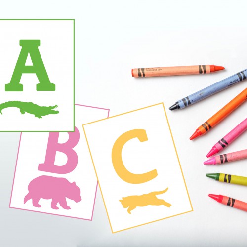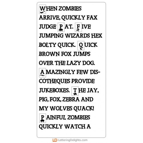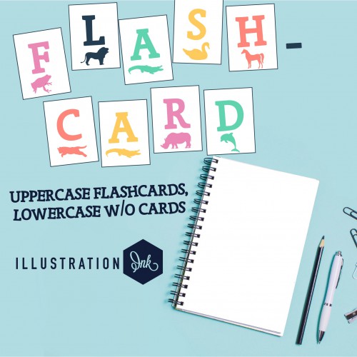 This hand-crafted font features an uppercase that have animal flashcards (each animal beginning w/ appropriate letter). The lowercase is without cards. There is additional cases you can access through Silhouette's glyph map. There is an A-Z without toggle, cards A-Z without letters, a blank card, and the animal silhouettes alone.