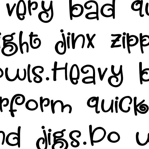 This cute little hand-written font is sporting lots of curls and is big and bold.