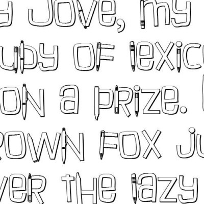 This hand-written font features a variety of pens and pencils throughout and an added 3d shadow.