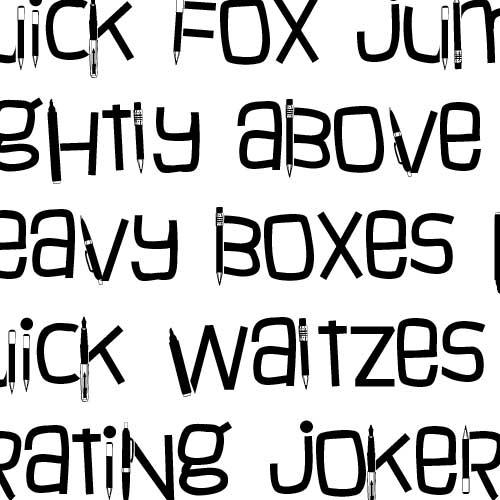 This silly sans serif font features a number of pens and pencils throughout.