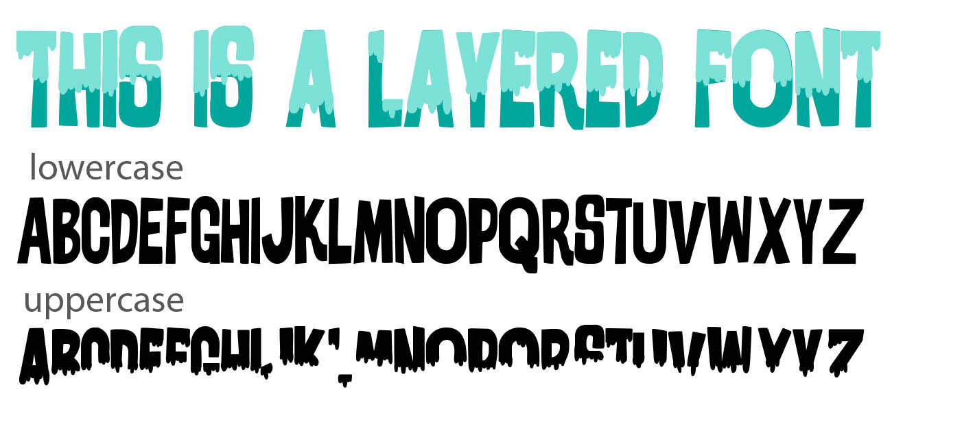 A layered font is simple a font that is meant to be layered. The upper and lower cases work together so you can have two colors in one font. These fonts work great for cutting machines and our layered fonts are made with care so that they are especially clean for great cutting. When possible we try to stencil items to help make easier cutting as well.
