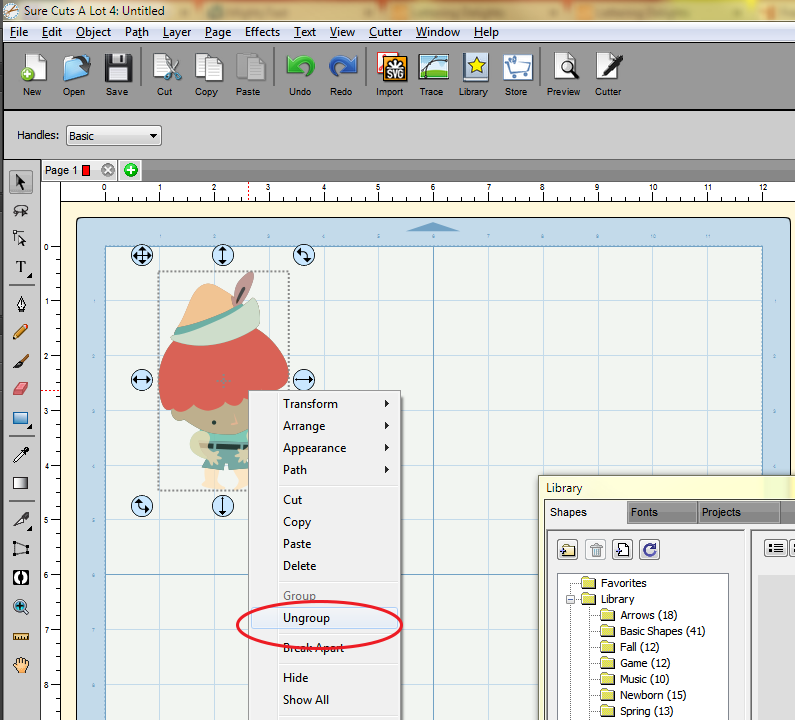 - Ungroup your file by right-mouse clicking and choosing "Ungroup". This gives you access to the individual layers.