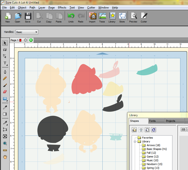 - Once the file is upgrouped, you can separate your images into pieces. You can place the different colors on different virtual mats. To add a new virtual mat, click the green plus button next to "Page 1".