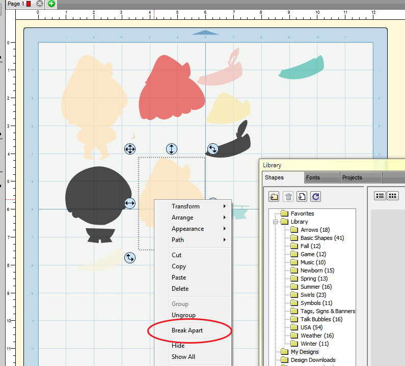 - If you need to alter an individual element that is a compound path, right-mouse click and choose "Break Apart"