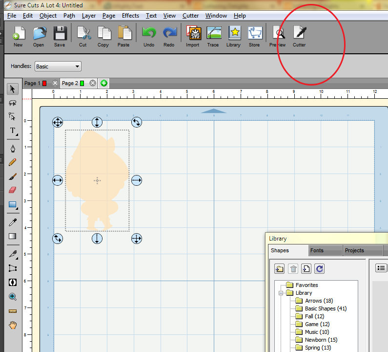 - When your paper is loaded on your real mat and your machine is on and you are ready to cut, send the file to cut by choosing "Cutter" icon.
