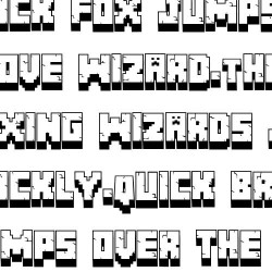 This blocky rock-looking, pixel-inspired 3D font has an uppercase that tilts back. The lower case is..