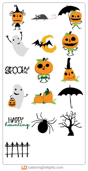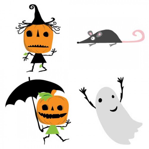Funny big pumpkin head with little bodies and their ghost friends and ready to celebrate Halloweenn. Perfect for a party or decor.
