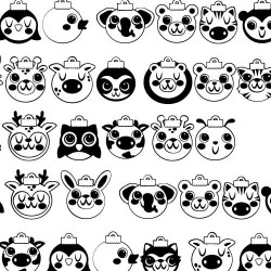 This cute collection of animal faces has Christmas greenery and flower as decor...
