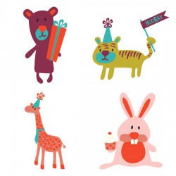 A fun collection of whimsical animals and Santa himself all dressed up for Christmas and cold weathe..
