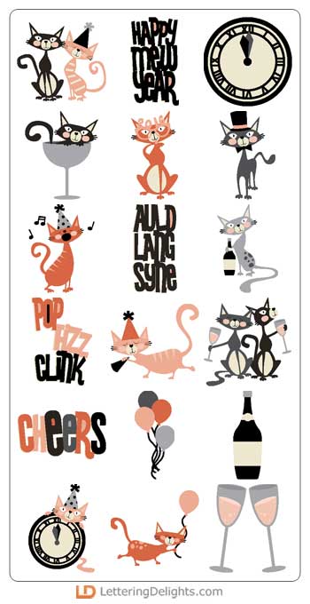 Get ready to bring in the New Year with this adorable mod cat inspired New Years celebration collection. These cat's are ready to party! Purr-fect for party solutions, scrapbooking, cards, invites and more! Font inspiration: ZP Ex Boyfriend