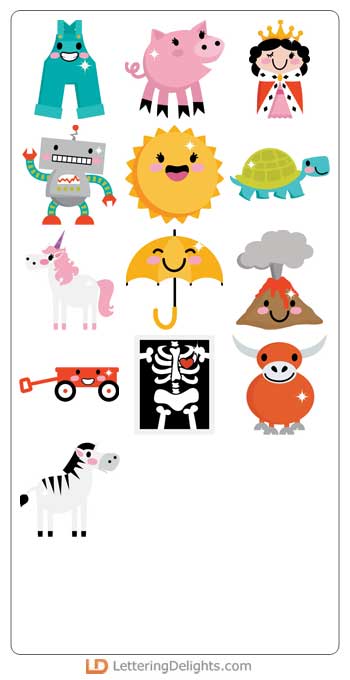 Bright, coloful, alphabet blends done in the popular Kawaii style. Great for classrooms, teachers, home schools, and more. Font recommendation: LD Inventive
