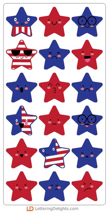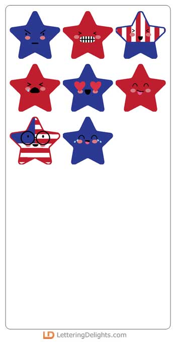 This fun collection features adorable kawaii-style star emojis and patriotic themed images and photo..