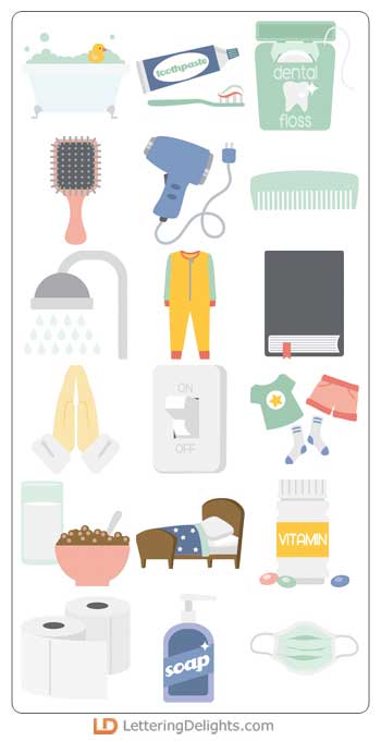 This cuttable graphic set includes all the chore images you need to make a daily chore chart. With 26 elements this graphic is perfect for chore charts, cards, crafts, decor, planner stickers, scrap book pages and more!
