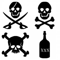 (Said with a gruff voice and a squinty eye...) Ahoy, all ye mateys! How be ye? 'Tis a fine day ta sail the seas, so if'n ye intends ta show yer Pirating ways, you'll be needin' to procure a bit o' the booty. Here in these worn pages, ye'll be pleased ta find all ye need. But be warned, keep ta the code an' have yer sea legs, er shiver me timbers, yer hearties'll have ye walkin' the plank! (Translation for non-buccaneers:) Hello, friends. How are you? If you'd like to add a Pirating look to your crafting or parties, just be sure to use the correct products. Here at LetteringDelights, we have exactly what you'll need! But, we want to warn you, you must be an authentic pirate, or you'll run the risk of ruining your swashbuckling image!