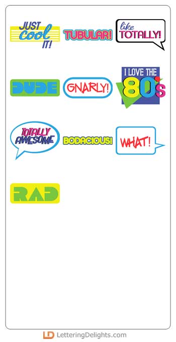 Get all our radical 80's slang words to complete your 80's collection. Perfect for cardmaking, photo props, scrapbooking and more!