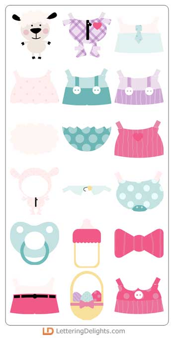 This cute baby lamb comes with a complete closet of clothes. This graphic set is perfect to play dress up, create adorable cards, Easter crafts, home decor and more!